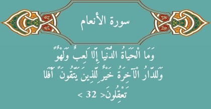 فارسی: زندگی دنیا، چیزی جز بازی و سرگرمی نیست! و سرای آخرت، برای آنها که پرهیزگارند، بهتر است! آیا نمیاندیشید؟